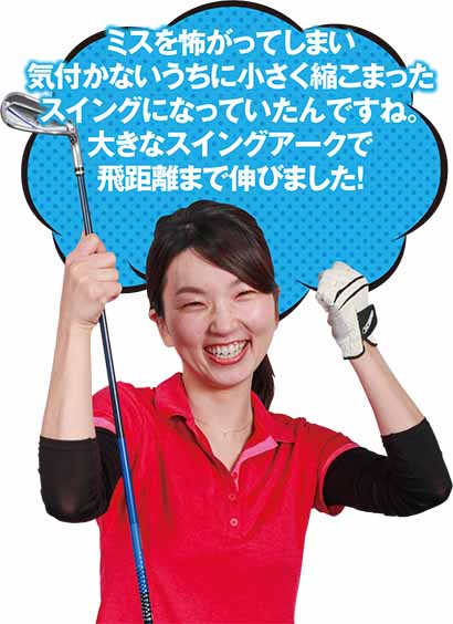 「ミスを怖がってしまい気付かないうちに小さく縮こまったスイングになっていたんですね。大きなスイングアークで飛距離まで伸びました!」(加藤さん)