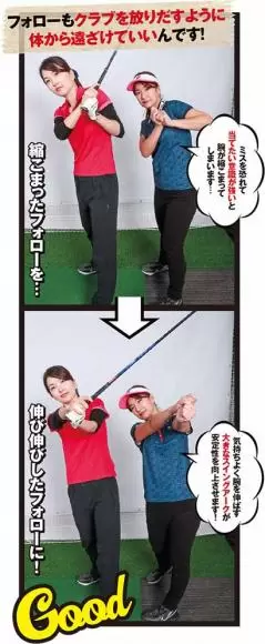フォローもクラブを放りだすように体から遠ざけていいんです!