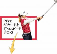 クラブの重さを利用して腕を伸ばせるスイングに。ウェッジ3本を"手の力だけ"でゆっくり振る!!