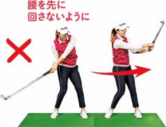 腰を先行して回そうとすると、フォローがインサイド方向に入ってしまい、スイング軌道が小さくなってしまう。