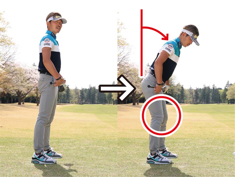 ・両肩から両腕を自然に下げた位置で両手をグリップすればアドレスが完成