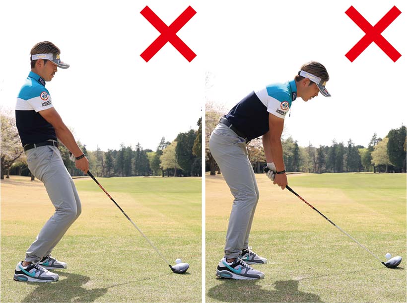 ドライバーの打ち方の基本の前に知って頂きたいのはアドレスです。クラブを構える姿勢のことですが、ゴルフの上手な人たちはグッドショットを連想させてくれそうな「カッコいい姿勢」で構えています。ところが多くの初心者はアドレスの姿勢がぎこちなくて、それがミスショットの原因に。逆にいうとカッコいい姿勢で構えれば、上体の前傾角度のバランスや下半身の安定感などが生じてグッドショットの確率が格段とアップします。