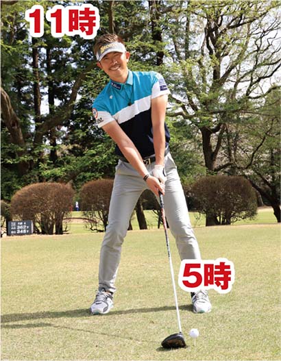 ・頭は11時、ボールが5時のポジションにセットする