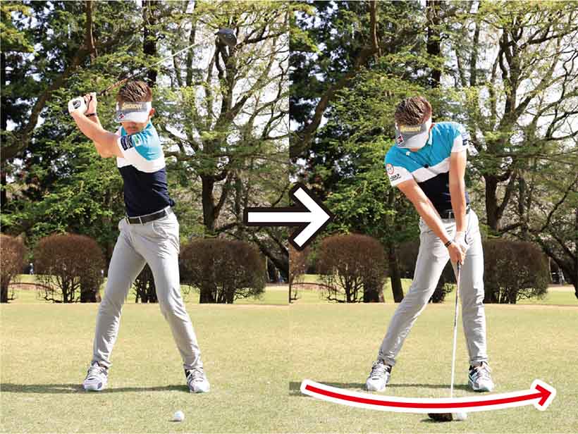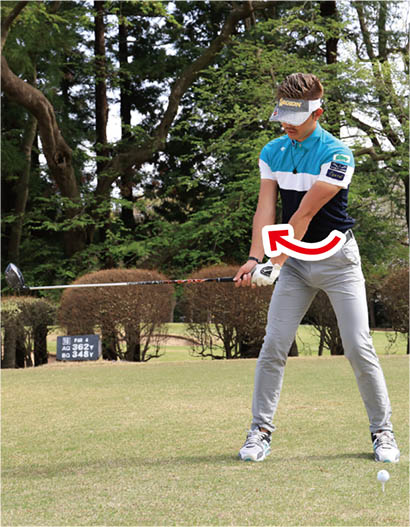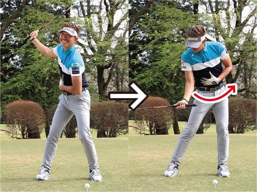 ・お腹の回転を意識すれば上体と下半身のバランスが整い、スイングがシンプル