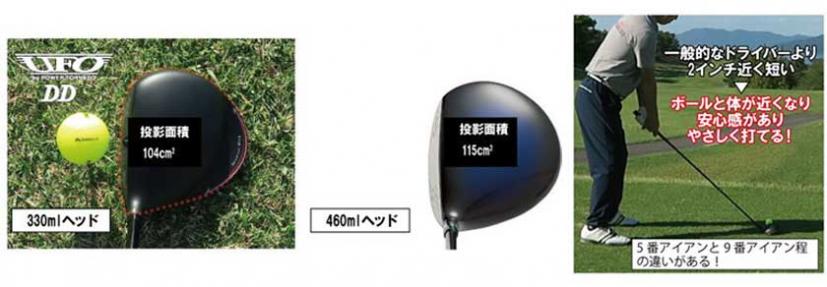 クラブ長さを43.5インチと短く設定。スイングコントロールがしやすく、芯に当たりやすくなるので、ミスを減少。飛距離も安定する。また、ヘッドから飛び出した「ユニバーサルウィング」の視覚効果により330mlの小型ヘッドでありながら、投影面積は大きくなっている。短尺との組み合わせにより460mlのドライバーと同じくらいの安心感があり、緊張するティーショットの場面でも落ち着いて構えることができる。