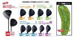 ヘッドから飛び出した”ユニバ―サルウィング”を特徴としたUFO by POWER TORNADOは、フェアウェイウッドの距離をカバーする#33からアプローチウェッジの代わりになるAAまでの幅広いロフトをラインナップ。アイアンが苦手な方もUFOを複数番手入れることでアイアンなしのセッティングが可能と好評だ。今回、新発売する曲がらないドライバー“DD”でティーショットをフェアウェイに確実にナイスオン2打目は#33からAAを組み合わせることで、どんな距離・どんなライでも、グリーンオン!思い描いたコース戦略どおりの飛びで、ベストスコアを狙うことができる。