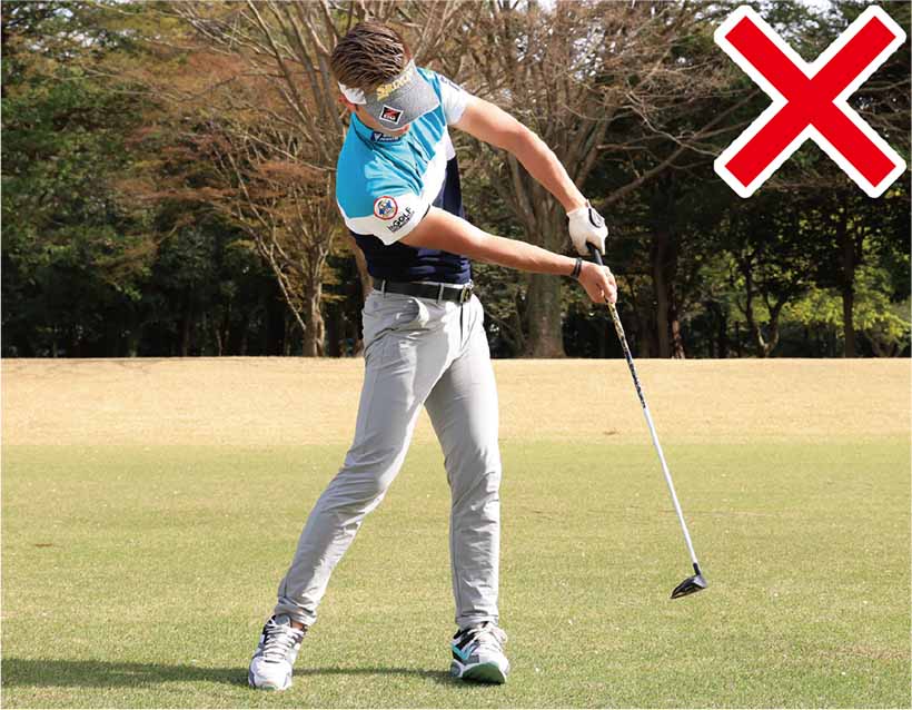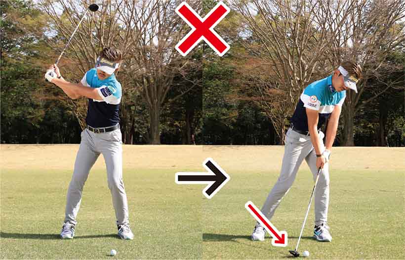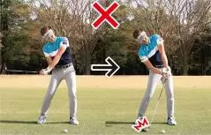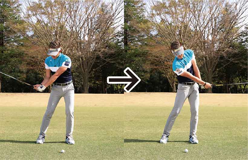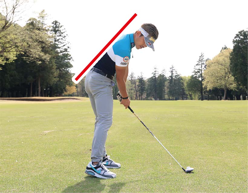 ・お腹の回転を意識し、アドレスの前傾角度をキープする