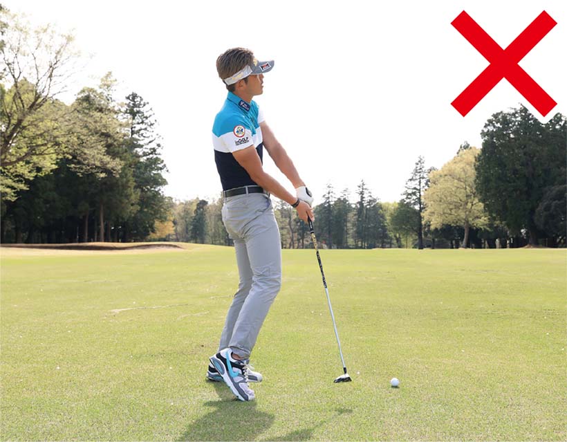 ・ショット前にソールを芝の上で軽くこする素振りを繰り返す