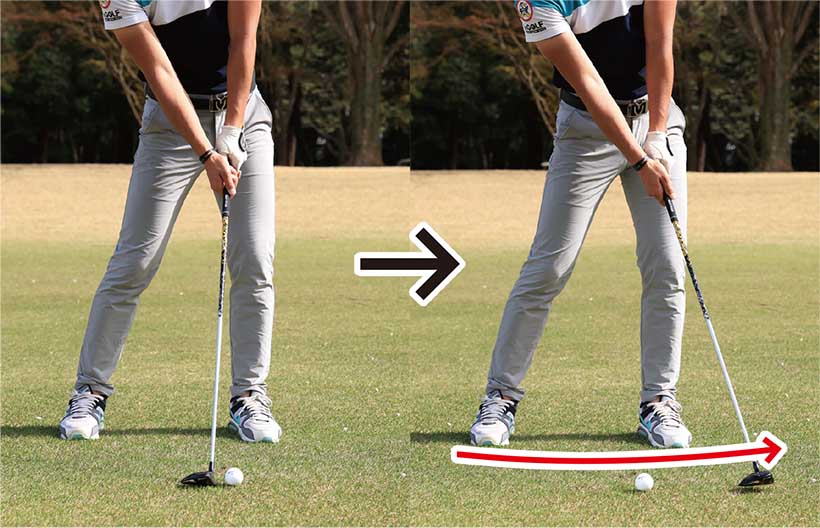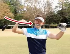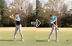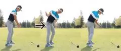 ・両手を5〜10センチほど離してクラブを持ち、両手の返しを使って打つ感覚をマスターする
