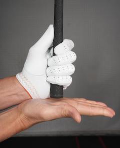 左手小指の下にある手のひらの膨らみでクラブを支える感じで握るとスイング中にクラブが暴れない。