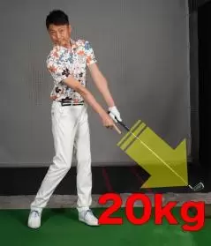 先端が重いクラブを振ると遠心力が発生し20kgもの力で引っぱられると言われます。体にそんな力がかかってもバランスを崩さずに立っていられる。これがアドレスに求められる条件です。