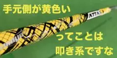 さて、今回のDAAAS、手元部分が黄色い。ってことで、今までの黄色系シャフトの後継モデルということになります。ATTASの黄色といえば最初が3代目の「サンジョウ」、そして8代目の「PUNCH」という、中間部から手元側がしなり、叩いていけるタイプのシャフトです。特にDAAASでは「手元しなり」を追求し、ダウンスイングの際に自然とタメが作れ、打ち急ぐことなく安定した弾道が出る叩き系のシャフトに仕上がっています。