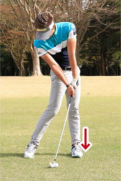 これらになります。また、ボールの先(飛球線方向)の芝を削り取るようにスイングする意識をもつとなおよいでしょう(ターフを取る意識をもつ)。