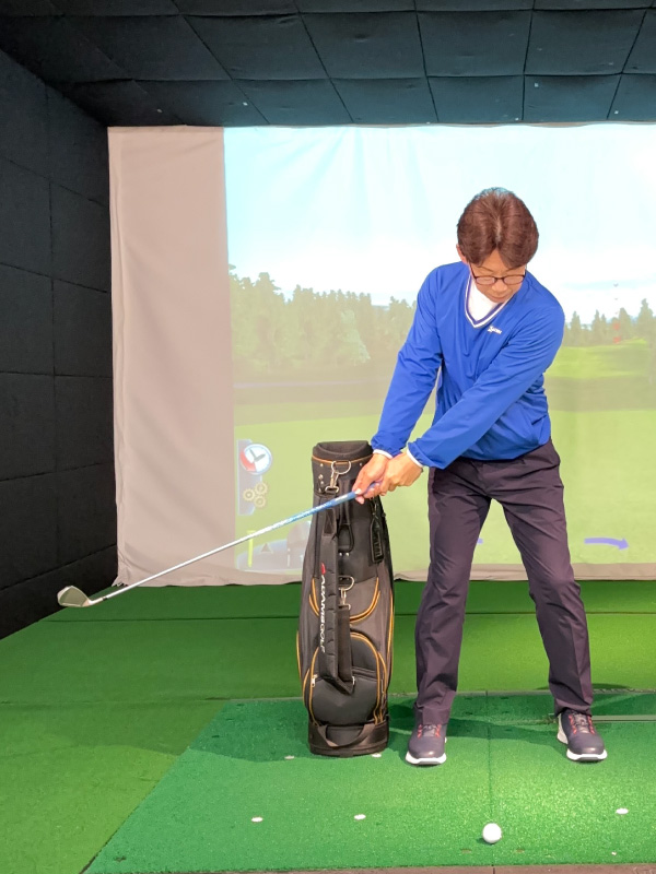 - 体の横にキャディバッグを置いて打ちましょう
