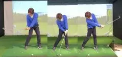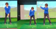 左足へ体重が移動せず、右足へ残ってしまうと、クラブヘッドがボールの手前に落ちやすくなってダウンブローで打つことができません。