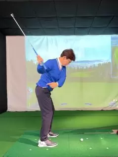 グリップエンドがおへそを指すフォロースルーを作りましょう
