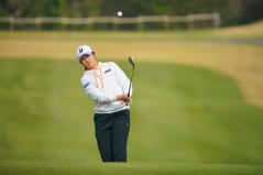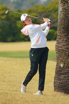 ニチレイレディス最終日、スコアを落とす苦しいプレーが続いた稲見は最終ホールでバーディ。3日間通算1アンダーとして辛うじてアンダーパーを守った。