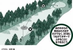 リスクを顧みないで強引な攻めに走ると、ボールを木に当てて大トラブルを招きやすいんですよ。林の中から勝負したって何にもなりませんし、かえって傷口を広げてしまうだけ。そこでティショットのミスを取り返そうとしないで、「いかにボギーで上がるか」を考えて作戦を立てましょう。