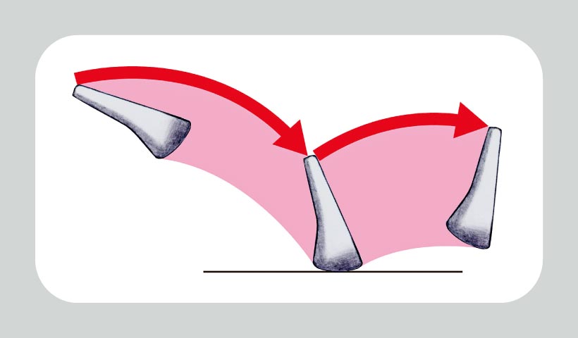 「切り返しでカッピングをほどきつつ、ヒールを後ろに回して落とすイメージでダウン。これでスナップ動作に入れば、インサイドからしっかり叩けます」(森)