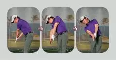 ②つかまりすぎを防ぐ手段として、フェースのトウ側を立てて上げたり、さらにフェースを後ろに倒す動きを加えたりするのが効果的だが、やりすぎは禁物。ホーガンはワッグルでのリハーサルと左手首の“カッピング”で安定させた。
