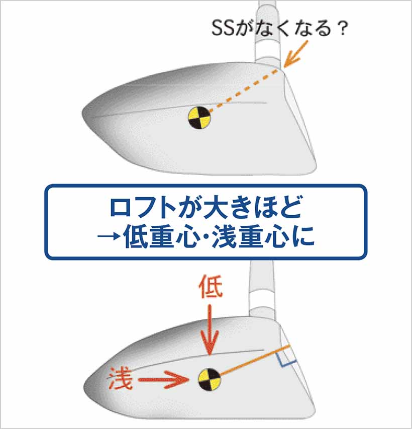 ヘッドのMOI(慣性モーメント)が向上したことで、打点のズレによるギヤ効果が減り、打球の直進性がアップ。インパクト時のフェース向きを適正に戻せることと、打球の打ち出し角とスピン量を調整することが重心設計では重要になった。