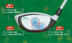 高反発時代のドライバーは最大ボール初速を競い合っていた。しかし、いまどきのドライバーはルールぎりぎりの高初速エリアをできるだけ広げ、ミート率を高くして飛ばすように設計されている。つまり、そのエリアに当てることさえできれば無理にヘッドスピードを上げなくても効率よく飛ばすことができるのだ。