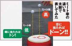 上の図は打点位置をずらして打った際のミート率をボール初速の計測結果。この結果からもわかるとおり、打点位置がずれても初速にはほとんど差がないことがおわかりいただけるだろう。