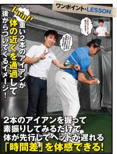 2本のアイアンを握って素振りしてみるだけで体が先行してヘッドが遅れる「時間差」を体感できる!