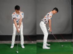 両手を真下にダランと垂らす。全番手、垂らした位置でクラブを持つ。