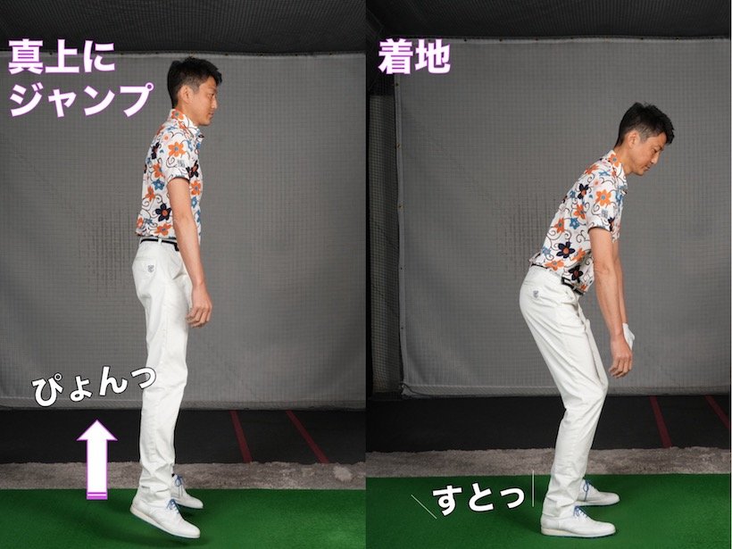 真上にジャンプし、着地したとき時の体勢を覚えよう。