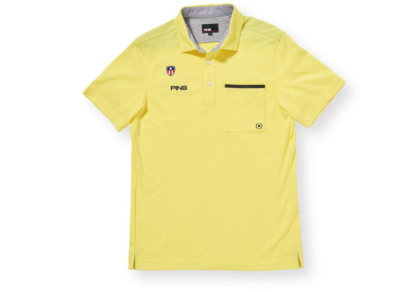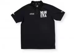 伸縮性の高い生地は、UVカット効果や消臭効果もあり夏ゴルフに最適。首回りやフロントのボタンまわりには、ニューエラオリジナル仕様のテープが施されている。