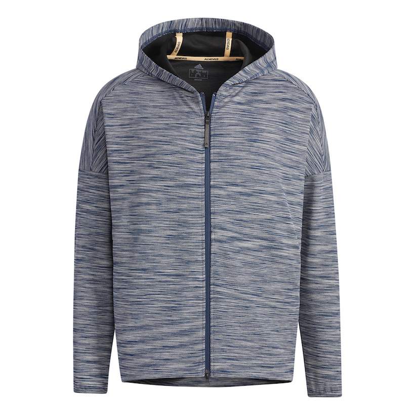 レイヤリングアイテムとして活躍する、フルジップフーディー。ストレッチ性に優れ、肌離れのいいメランジ素材を使用している。価格:1万2,100円
