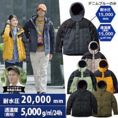 | 素材 | 本体(デニムブルー):ポリエステル100% ヨーク・外袖部分(デニムブルー):ナイロン100% 表地(デニムブルー以外):ナイロン100% 中わた:ポリエステル45%・ダウン35%・アクリル15%・フェザー5% 裏地前身頃・袖・フード部分:ナイロン100% 裏地後身頃部分:ポリエステル100% |