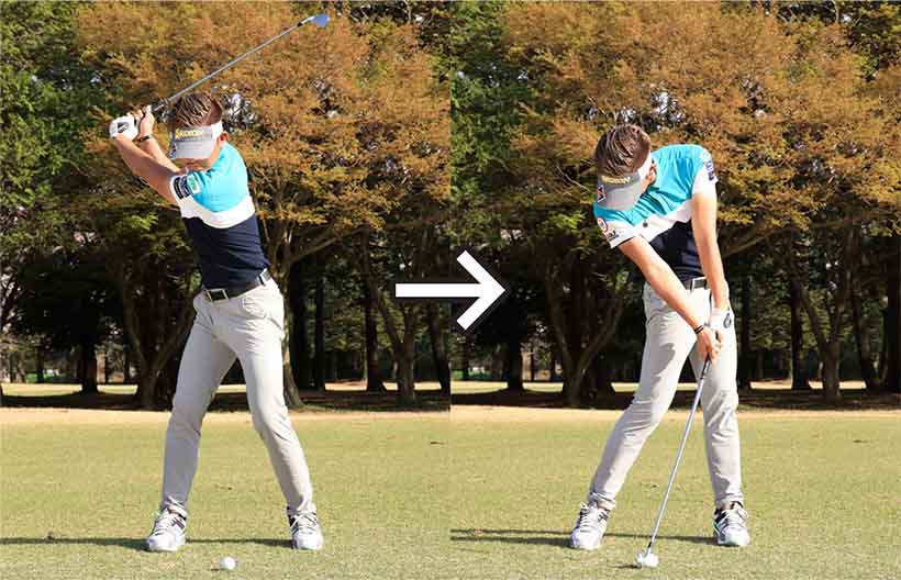 ・構えたときよりもロフトを立てるイメージでインパクト