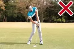 アイアンの飛距離が出ない一番の原因はすくい打ちです。とくに初心者に多く見られる傾向ですが、ボールを上げようとするとダウンスイングで右肩が下がったり、手首が早くほどけたりして、インパクトのパワー効率が著しく低下してしまいます。構えたときよりもフェース面のロフト角が増えるためにボールが飛ばなくなるわけで、しかもフェースが開きやすいですから右にも曲がります。インパクトの当たりが薄くて、飛ばないし、曲がるという残念な結果となるのです。