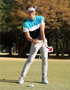初心者やアイアンが飛ばないと悩む人たちは、手だけで打つから球が軽いんですね。たとえばアイアンの名手で知られる申ジエ選手は、アイアンの縦の距離をそろえるのが抜群にうまい。しかも球が重い。これはカラダの全体で打っているからです。プロゴルファーでもアゲンストの風に弱いというのは球が軽いからで、カラダの全体が使えていません。アイアンの飛距離を伸ばしたければ、カラダの全体を使って打つ感覚をマスターすることが先決です。その感覚を先に身につけておくと、インパクトの正確性もアップし、アイアンがどんどん上達します。