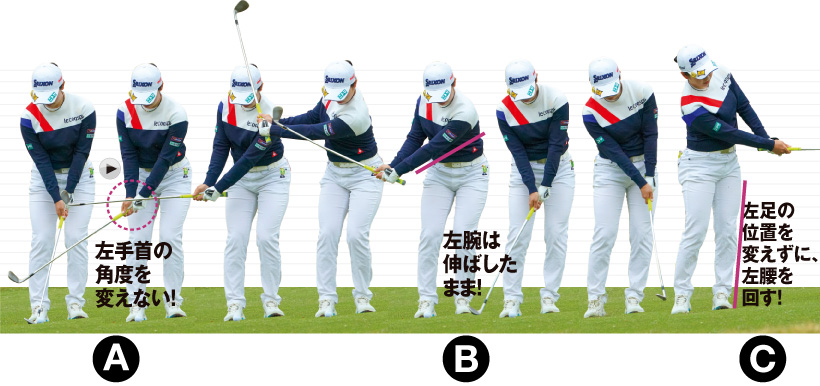 小祝さくら流アプローチの基本|小祝さくらの安定感のヒミツはコレ!手を使わず、体を回すには左手首、左腕、左足がカギ!