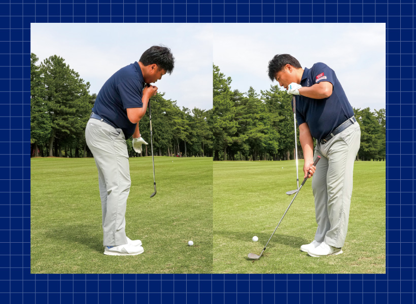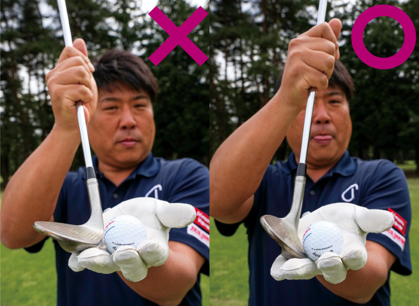 ラフの抵抗を最小限にするにはフェースを被せて、“チョイ立て”に!