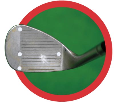 アプローチでスピンをかけたければ、打つ前に準備すべきことが3つあります。1つめはスピン系のボールを使うこと。2つめはウェッジのフェース面を毎回きれいに拭くこと。芝の葉、ボール表面や練習マットの削りカスがくっついたままだと目に見えてスピン量が落ちます。素振りをしたときにも本番のショットを打つ前にフェースを拭きましょう。そして3つめはノーメッキのウェッジを使うこと。ただし、錆びるのが嫌だからと油などを塗るのは禁物。もし油がついたら使う前にきれいに拭き取りましょう。