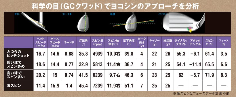 スピンロフトとは、ダイナミックロフトからアタックアングルを引いた角度で、ダウンブローが強くなるほどスピン量が増える。そのことを感覚的に覚えているプロは、無意識のうちにボールの位置やヘッドの軌道を調整しているのだ。また、ヘッドスピードも約2m/s上がっている。