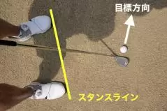 バンカーショットを打つ際はターゲットライン(飛球線・目標線)に対して少しだけオープンスタンスにするのが、もっとも一般的・普遍的です。