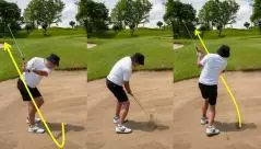 ただ、初心者や初級者はまずはコックを使った打ち方を練習してみましょう。コックを使うとダウンスイングでクラブヘッドが下りてくる角度が少しキツくなり、さらにヘッドの運動量が増すため、砂を爆発させやすくなります。