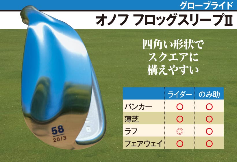 バンカーよりラフでのヌケがよかった。芝の抵抗を感じずに“するっ”と抜けます。その他のライでもソールが滑ってくれるので、ダフらせながら振るとラクに打てます。