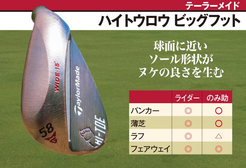 ソール幅は広くないのにバウンスがしっかりと効いてしかも跳ねない。ラフやバンカーでヘッドが少しボールの下に入ってから上に抜けるのでスゴク簡単に打てます。