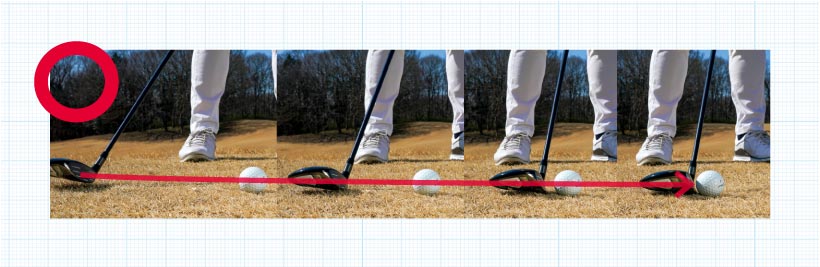 7WやUTは、ミスヒットに強く低重心で球が上がりやすいことがメリットです。つまり多少打点がブレても、フェースの下側でヒットしても、球が上がって曲がらずに飛んでくれることがロングアイアンとの違いです。この特性を生かすのがいわゆる“はらい打ち”。入射角を浅くしてヘッドを滑らせるように振ればオートマチックに球を飛ばしてくれます。