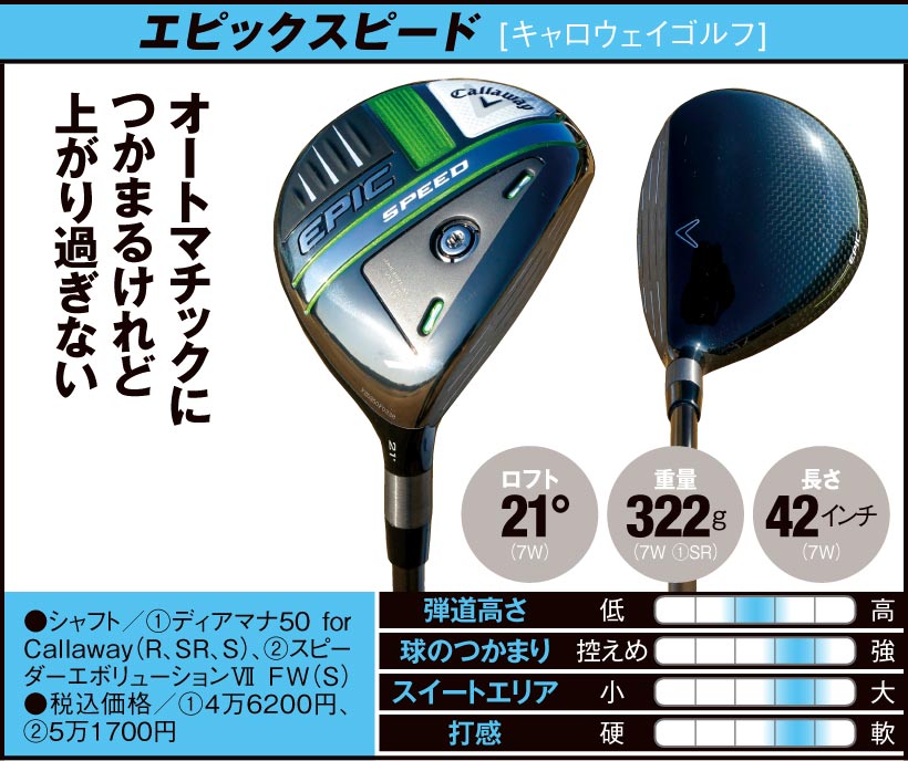 ●シャフト/①ディアマナ50 for Callaway(R、SR、S)、②スピーダーエボリューションⅦ FW(S)●税込価格/①4万6200円、②5万1700円