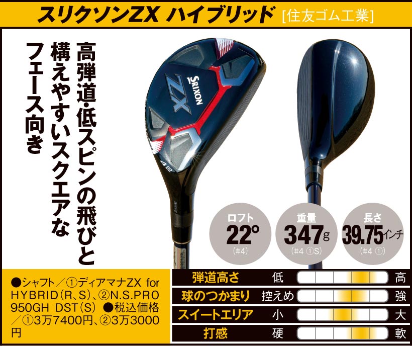 ●シャフト ①ディアマナZX for HYBRID(R、S)②N.S.PRO 950GH DST(S) ●税込価格 ①3万7400円、②3万3000円