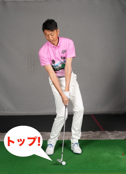 それにはヘッドを上から入れてクラブフェースの上を滑らせながらヒットしなければいけません。例えば、下からボールを撫でるように打ってトップ気味に当たるとボールに順回転がかかって、落下してからも止まらずコロがってしまうのです。