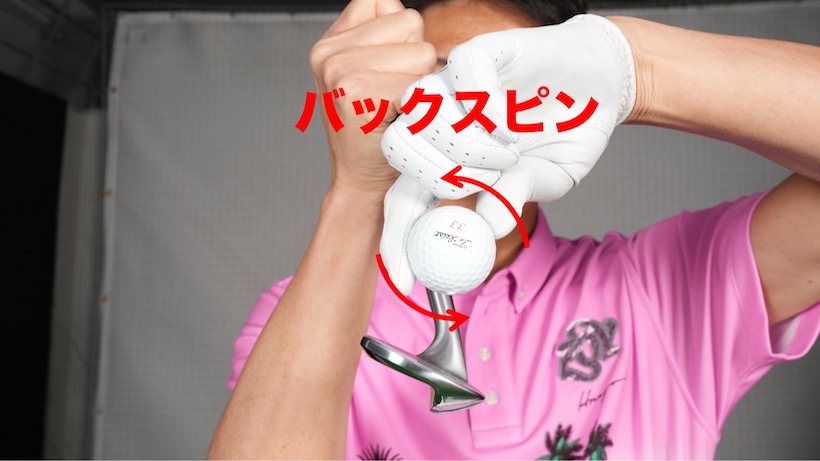 狙ったところに打つとは、狙ったところにボールを止めるということです。そこで必要になるのがバックスピン、ボールに飛ぶ方向とは逆の回転をつけることです。