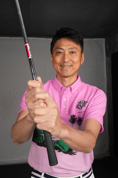 まずパッティングのイメージで8番アイアンを持ちます。グリップの握り方もパターと同じにしましょう。